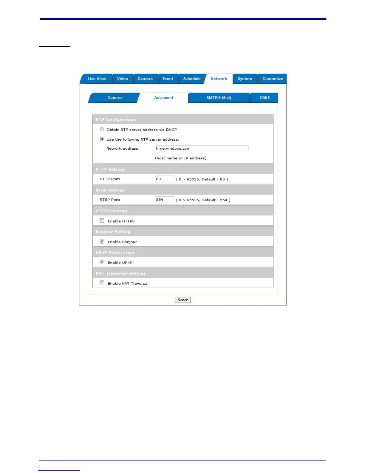 RTSP: set the RTSP (Video) port for video data transmission.