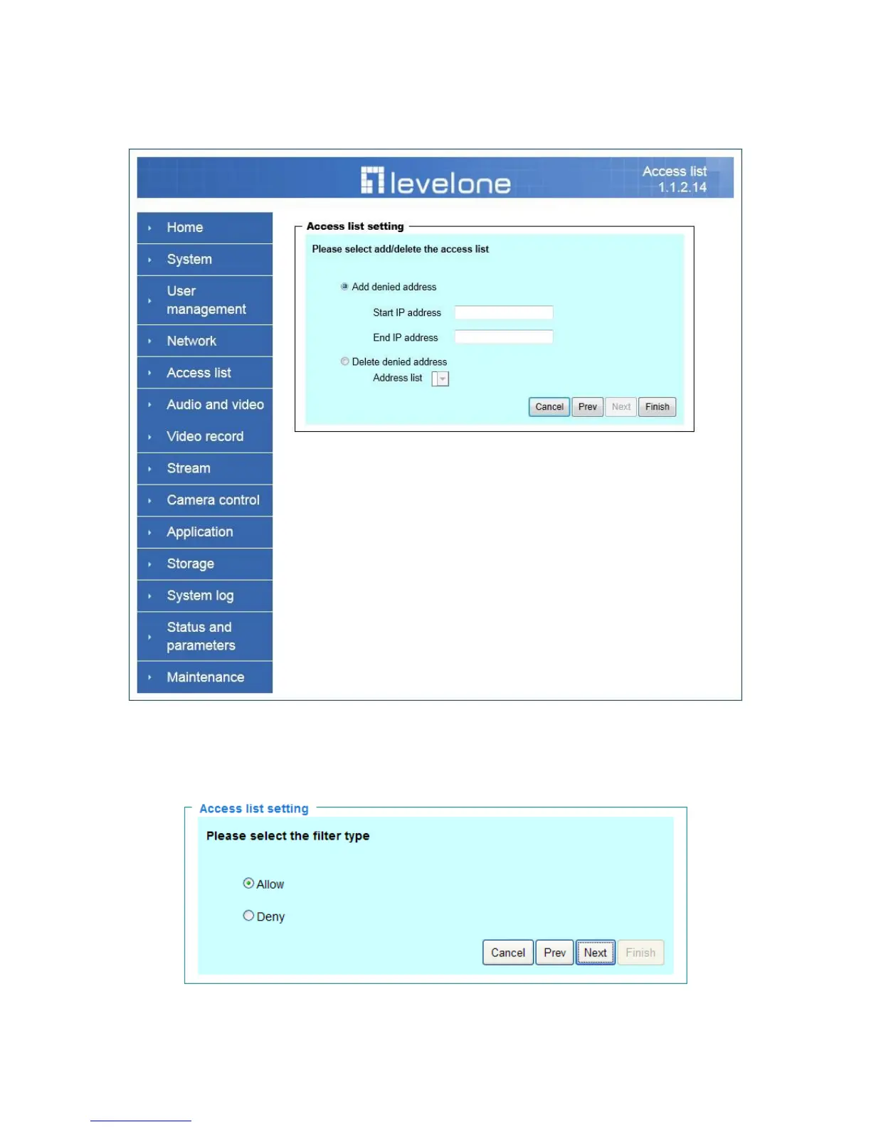 LevelOne FCS-1041 - Access list; Access list setting