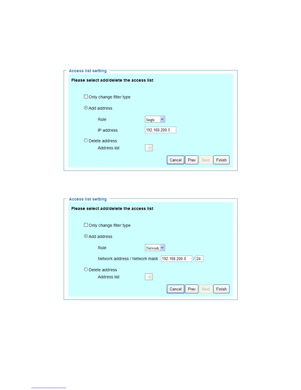 “Single” This rule allows the user to add an IP address to the Allowed/Denied list.