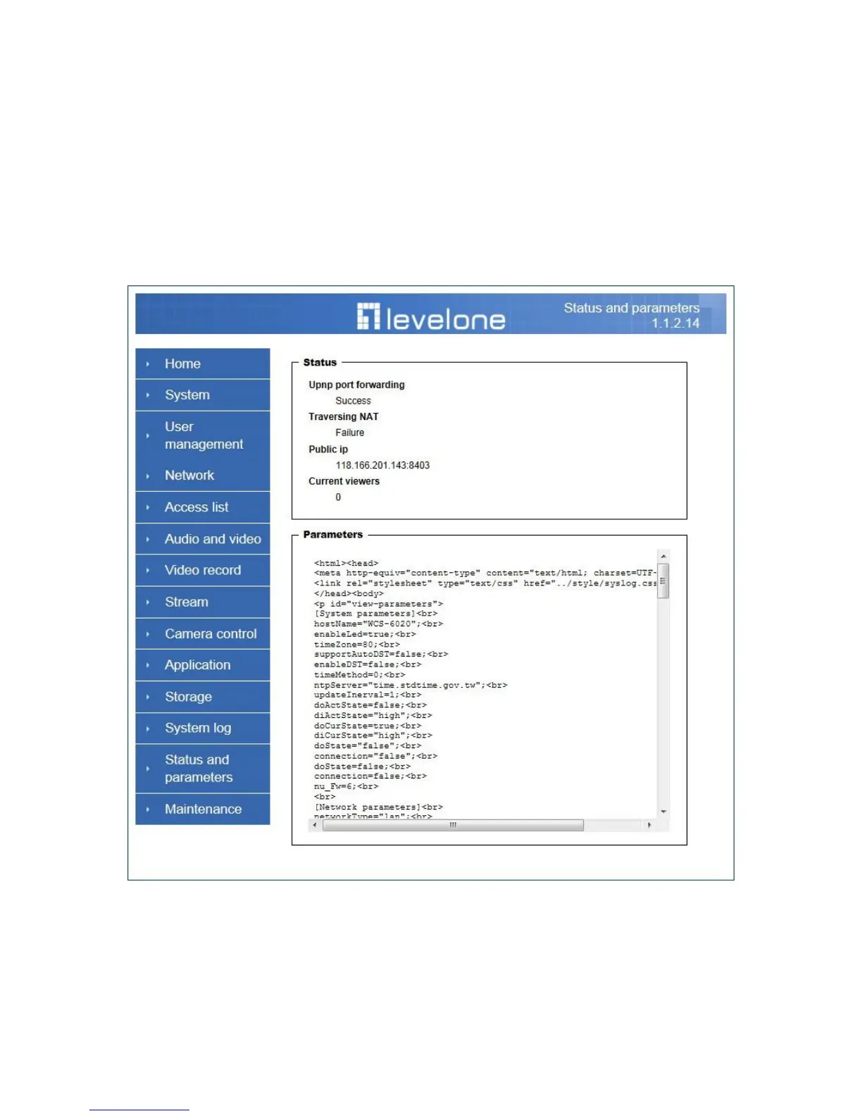 User can find a lot of information about the system such as “Upnp port forwarding”,