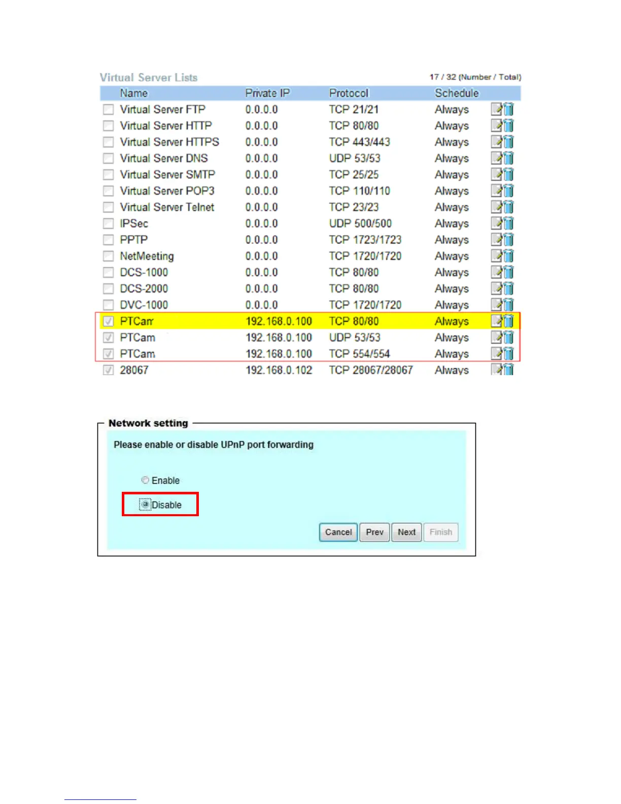 2.Go to camera Network page. Disable UPnP port forwarding function.