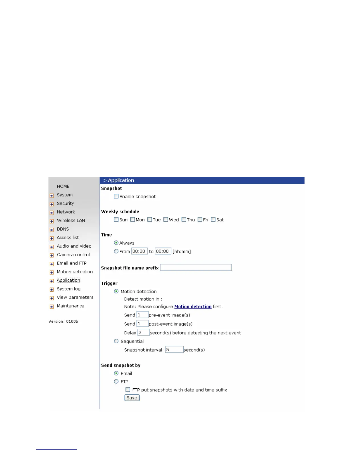 “FTP” The snapshots will be uploaded to the external FTP server with the file name defined in the