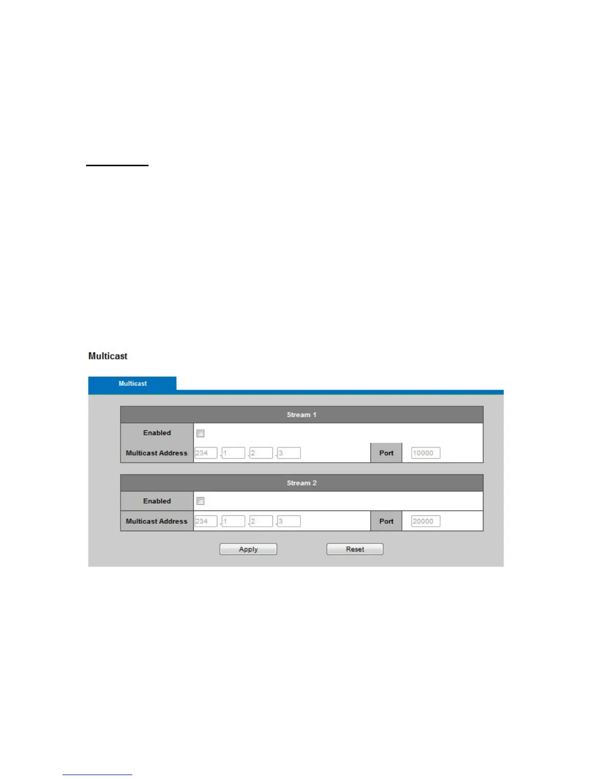 Network Camera. The default value for multicast address and port are 234.1.2.3 and