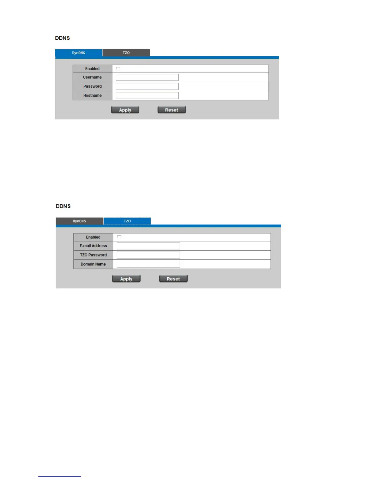 provider. Enter the e-mail address, password and domain name when enabled the TZO.