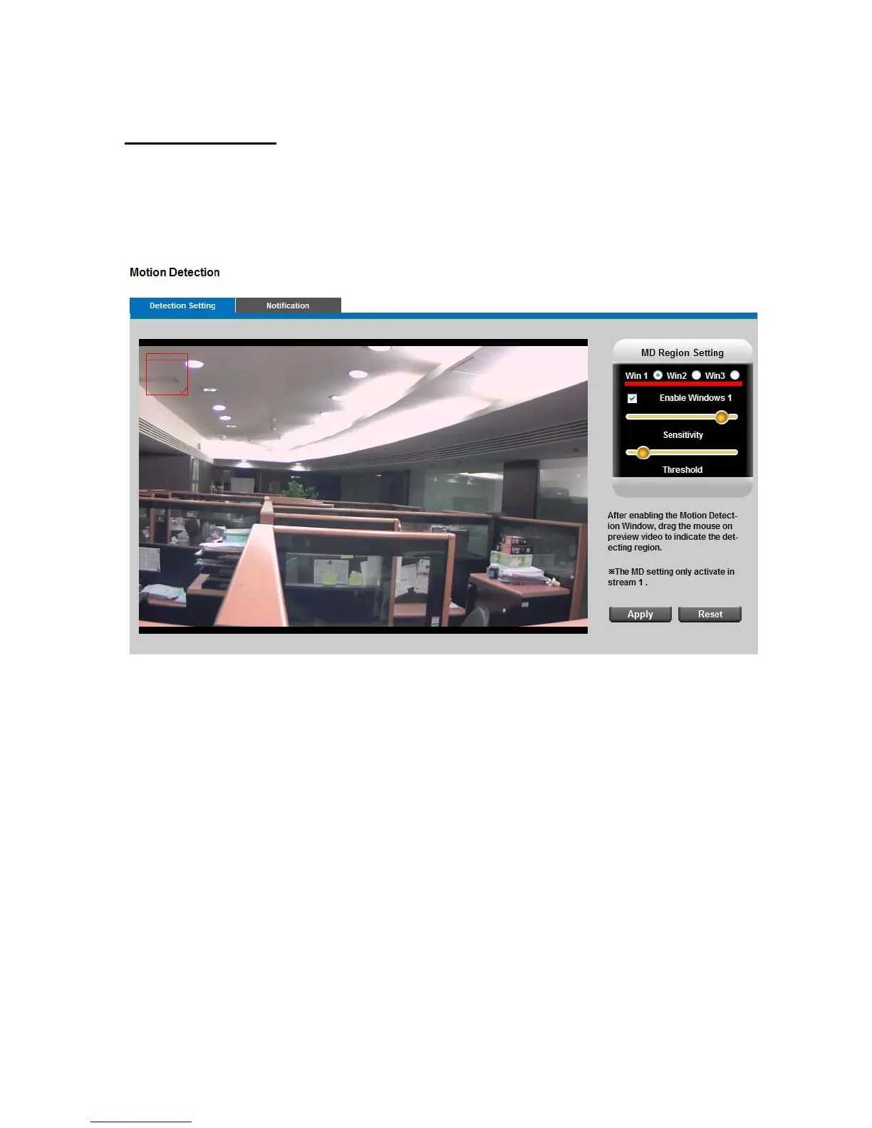 motion detection. There are three motion detection windows can be configured.