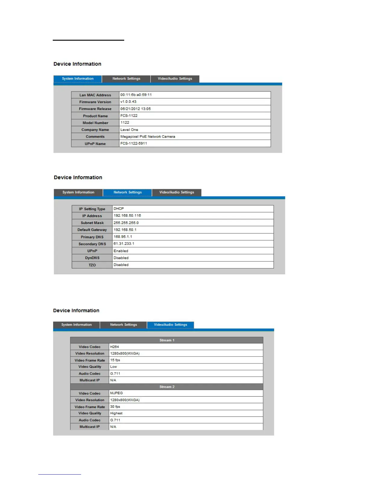 Video/Audio Setting: To view all the video/audio setting information about the network