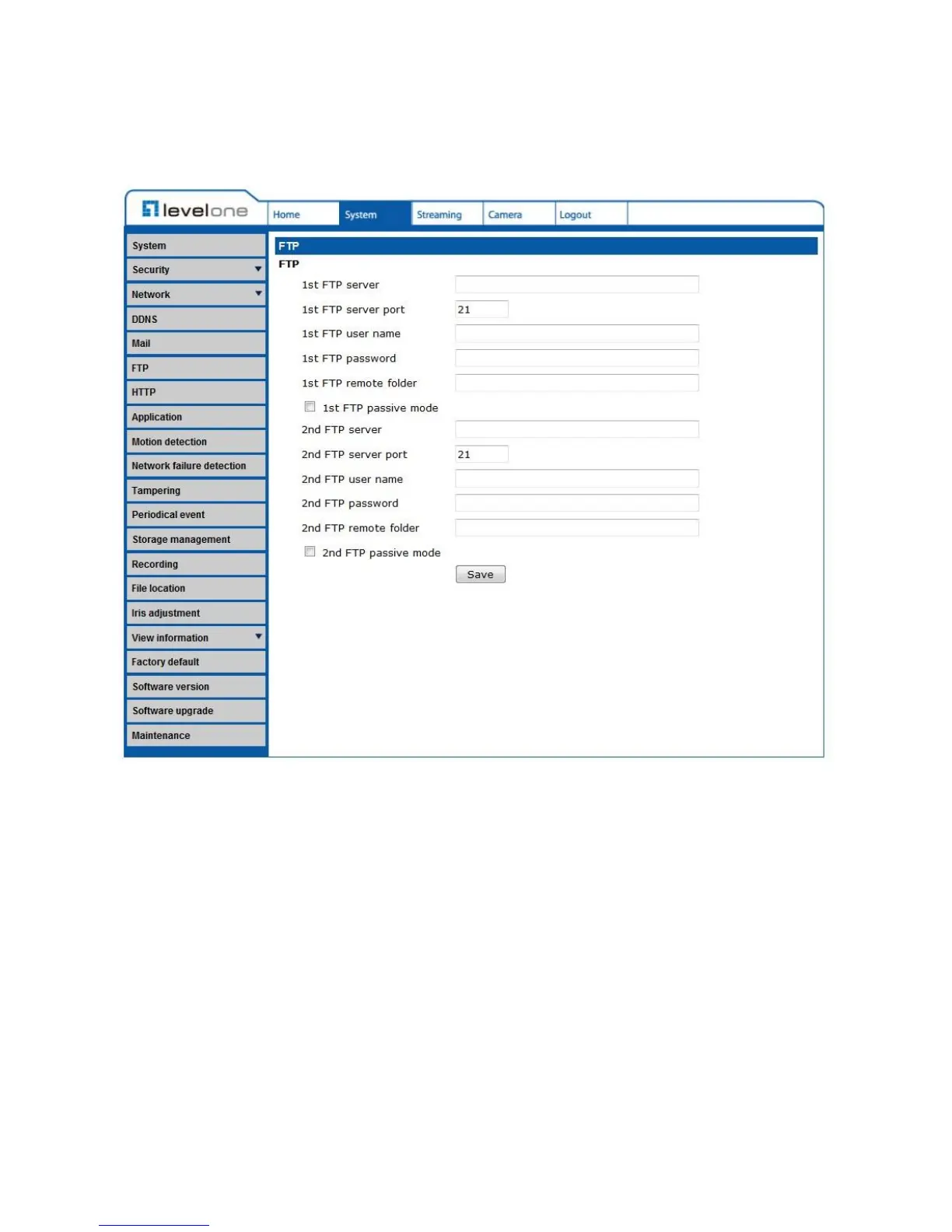 The FTP setting can be found under this path: System> FTP.