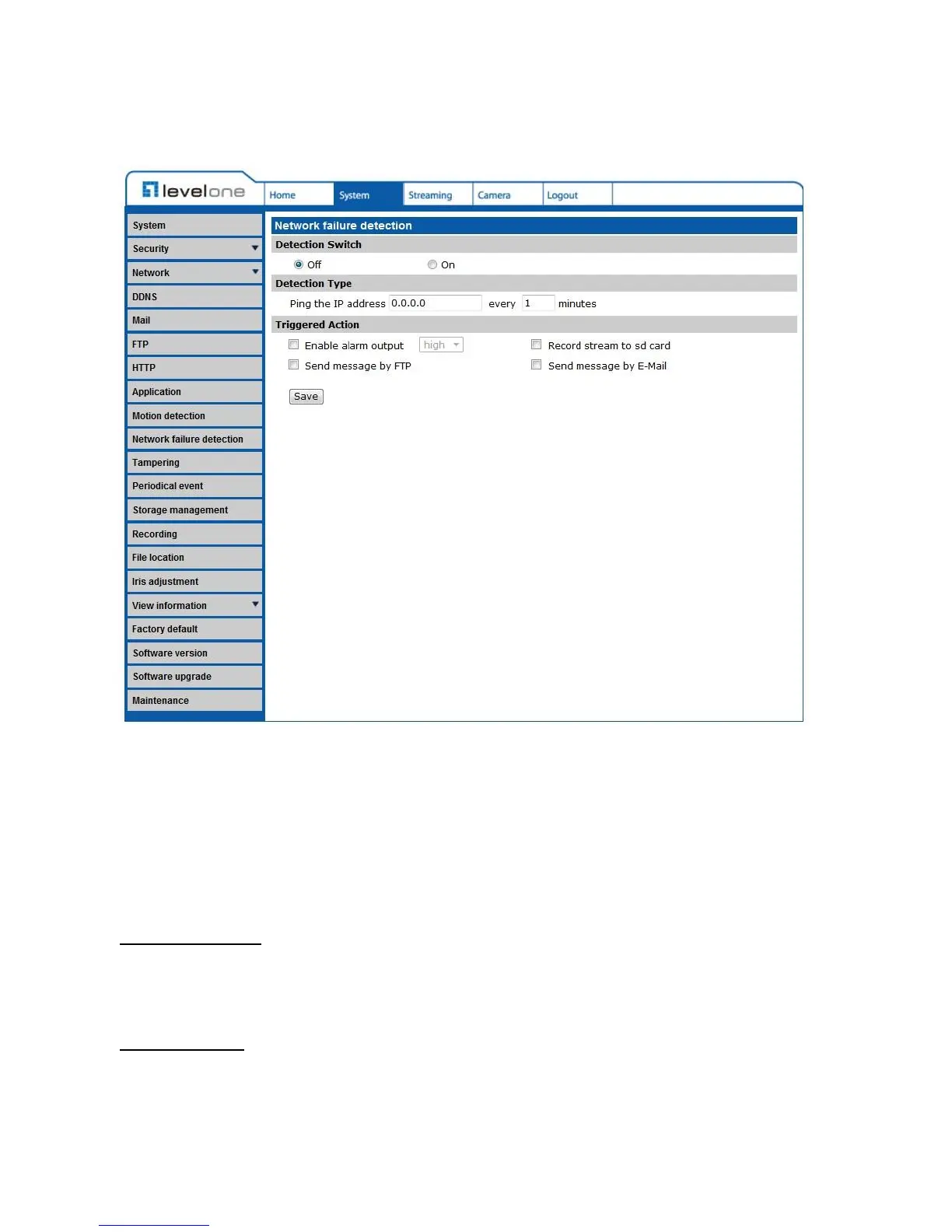 twork Failure Detection allows the IP Camera to ping another IP device (e.g. NVR, VSS,