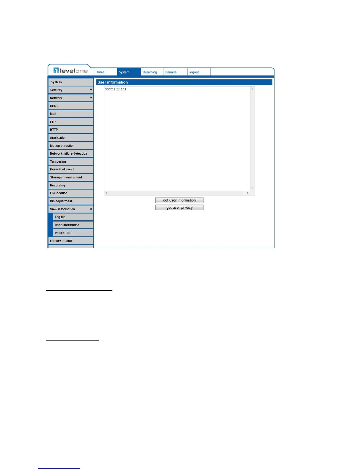 It indicates that one user’s login username is “User”, and the password is“4321”.