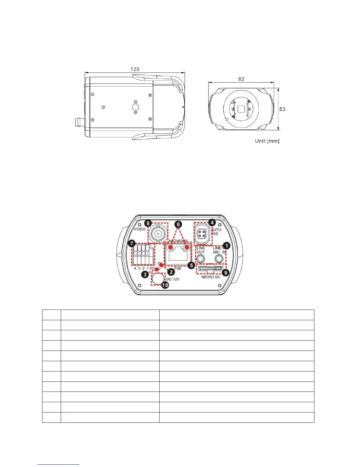 The diagram below shows the IP Camera’s reset button and various connectors. Definition