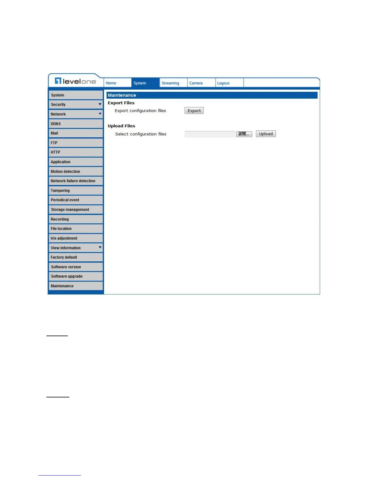 Users can save the system settings by exporting the configuration file (.bin) to a specified