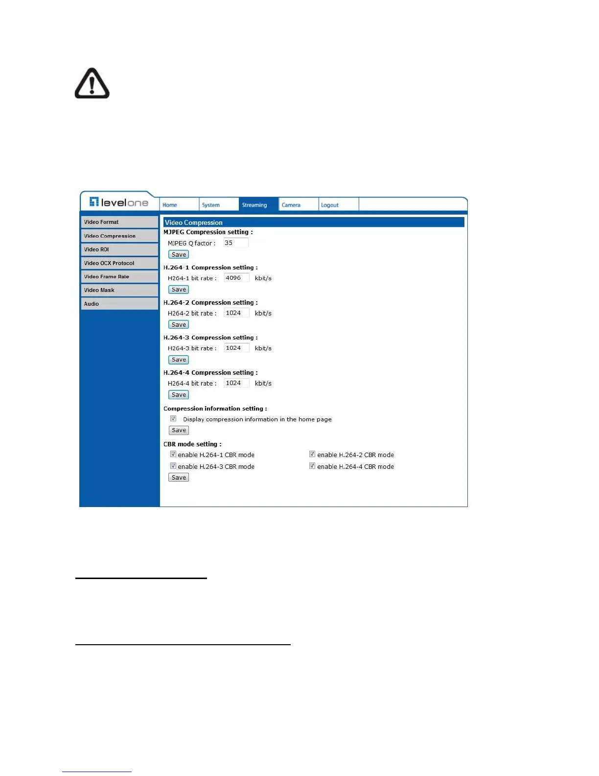 the setting range for H.264-1 is from 64 to 8192 kbps and for H.264-2/ H.264-3/ /H.264-4 is