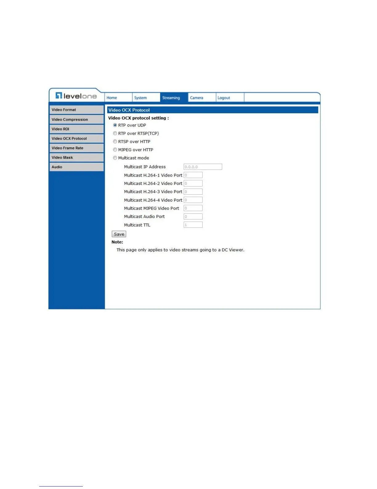 case of multicast networking, users can select the Multicast mode. Click on <Save> to