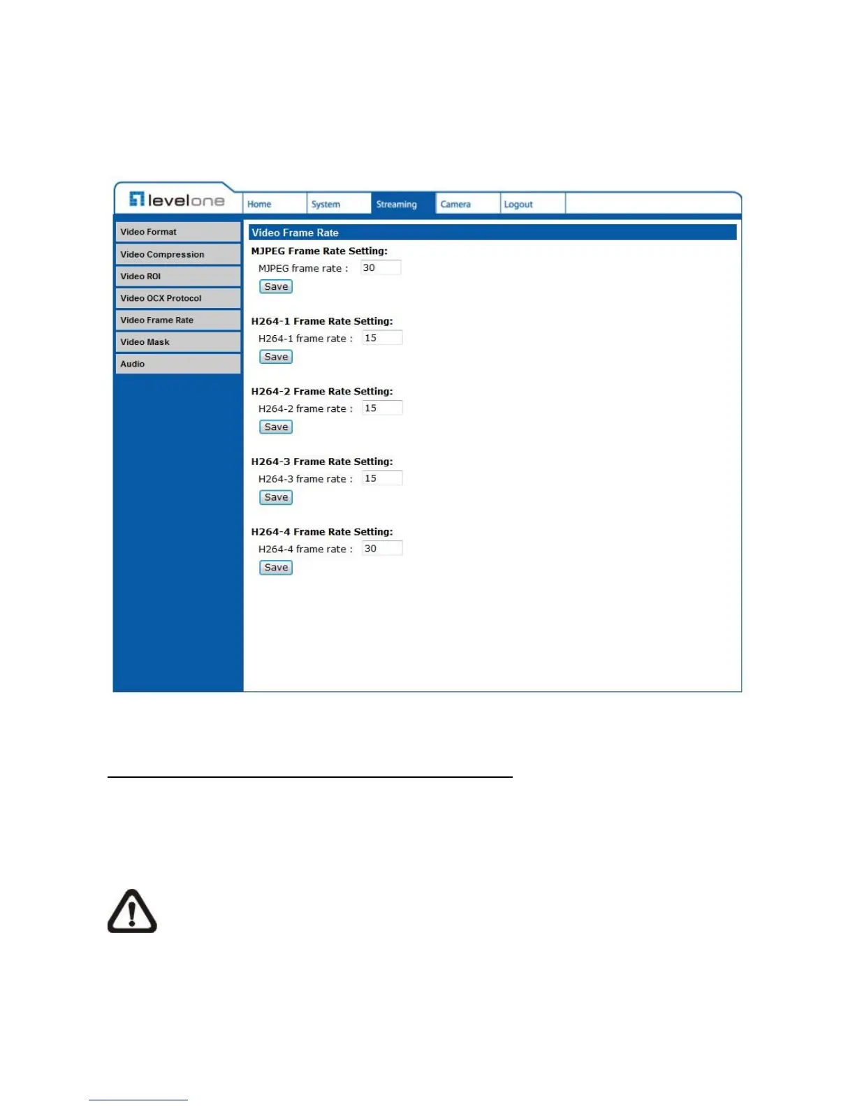 MJPEG/ H.264-1/ H.264-2/ H.264-3/ H.264-4 Frame Rate