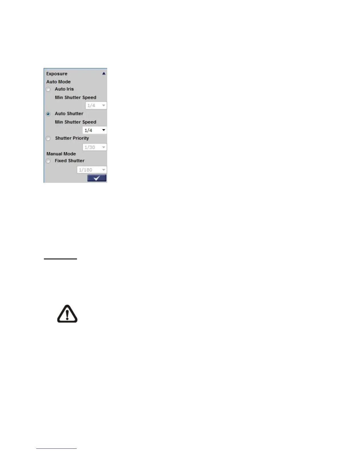 This function is to set the shutter speed at a specified speed. The range is configurable