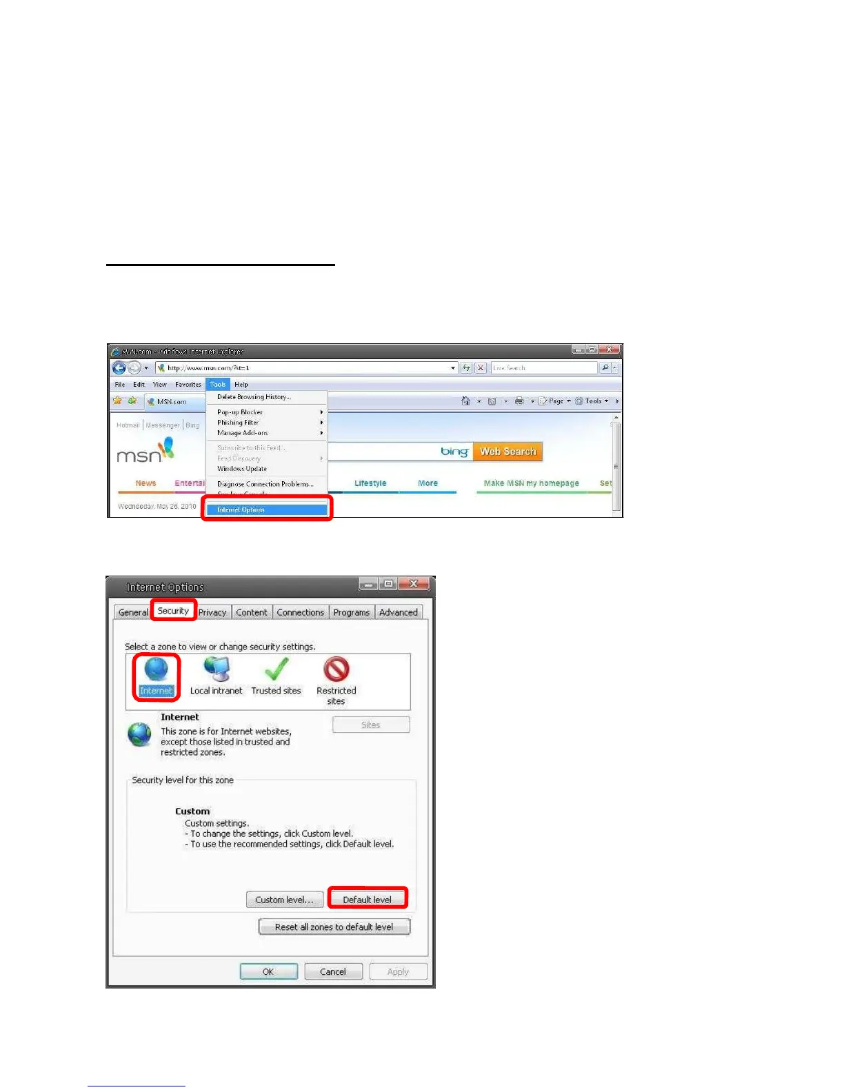 Internet Security Level: Default