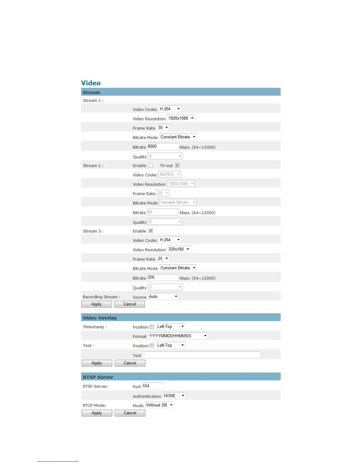 The Network Camera offers several separate streams for different viewing options.