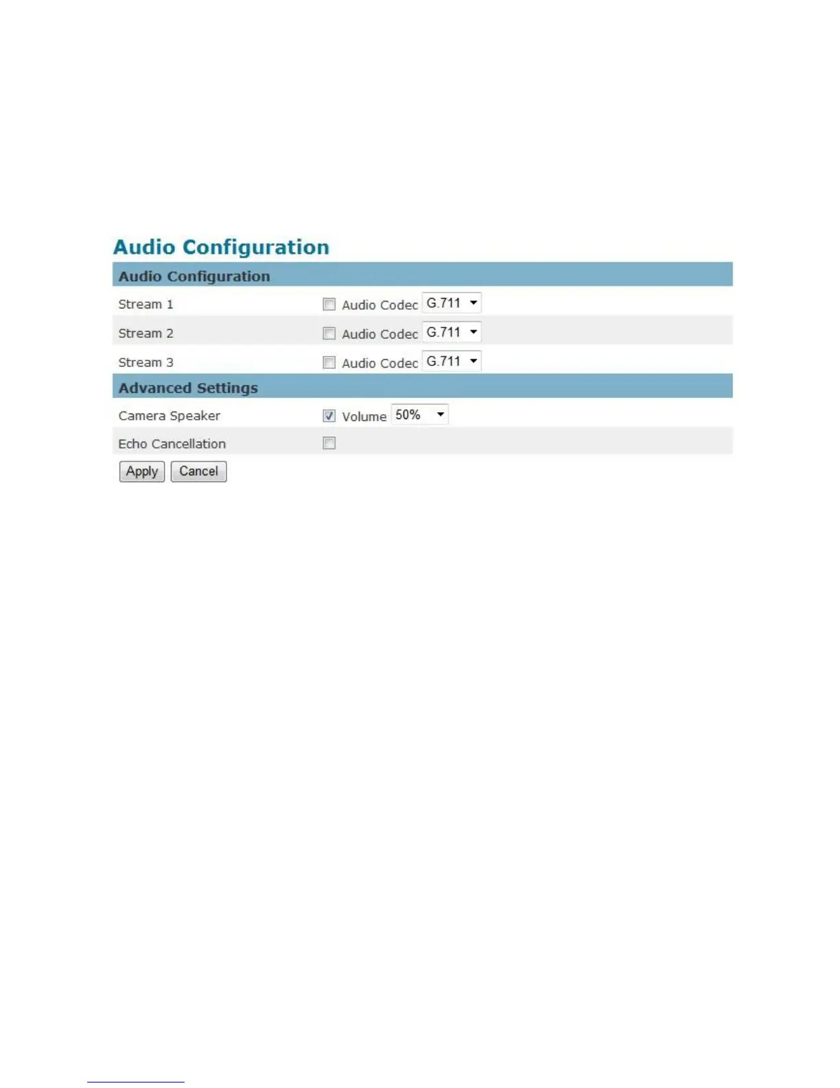 The administrator can enable or disable the audio function on either stream. If audio enable