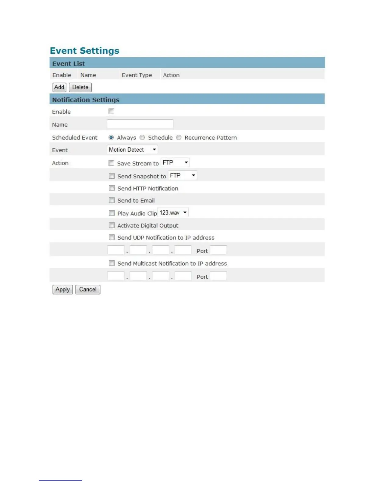 1. Check “Enable” and enter a descriptive name for the event schedule.