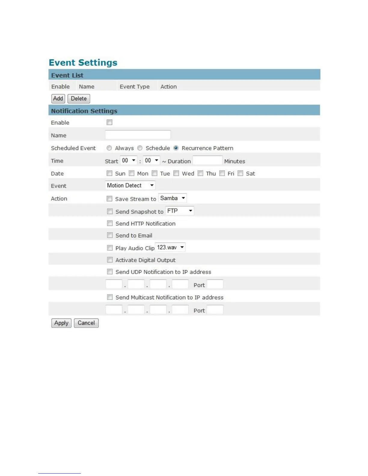 b. If Recurrence Pattern is selected, the following page will be displayed.
