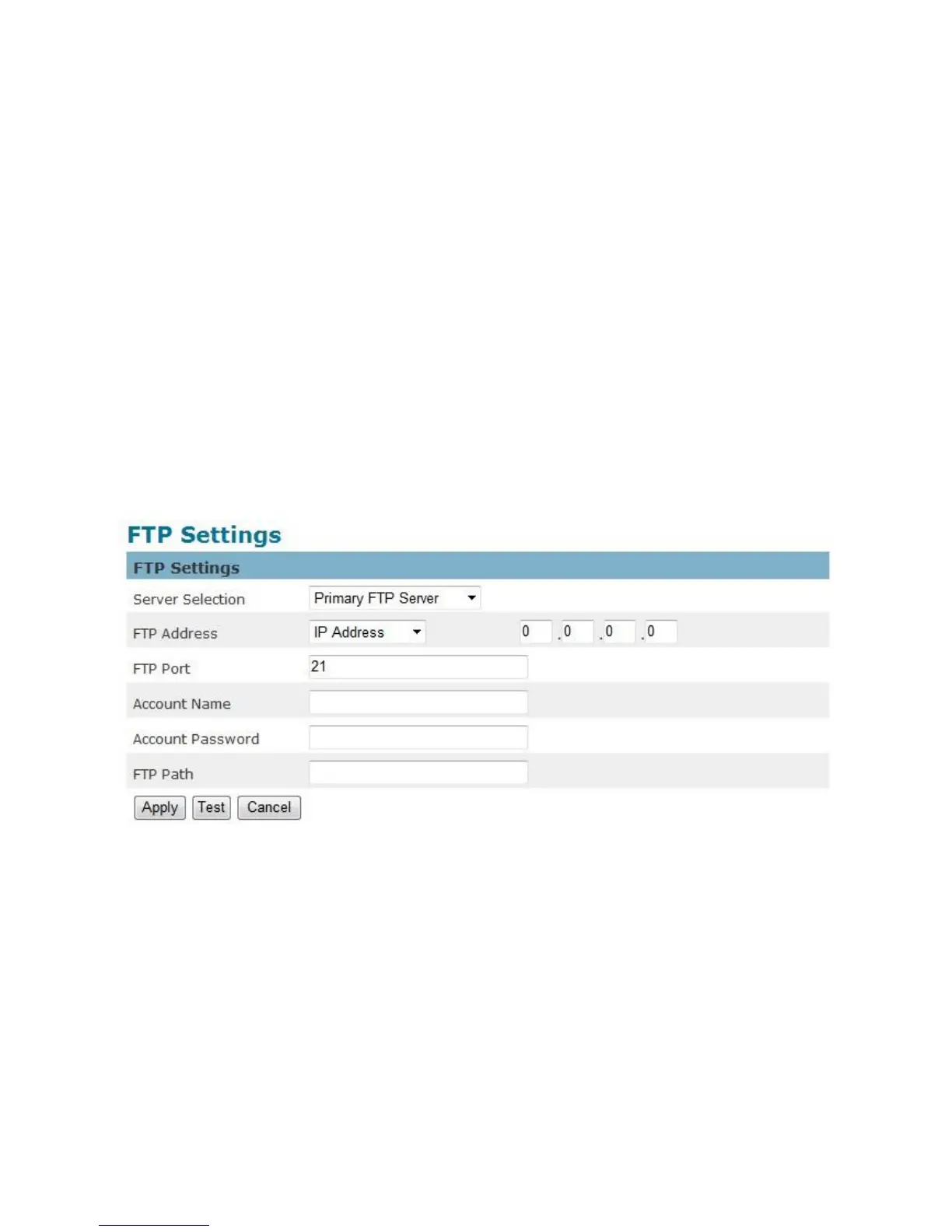 drop down menu to send media files to a FTP server when an event is triggered. Enter the