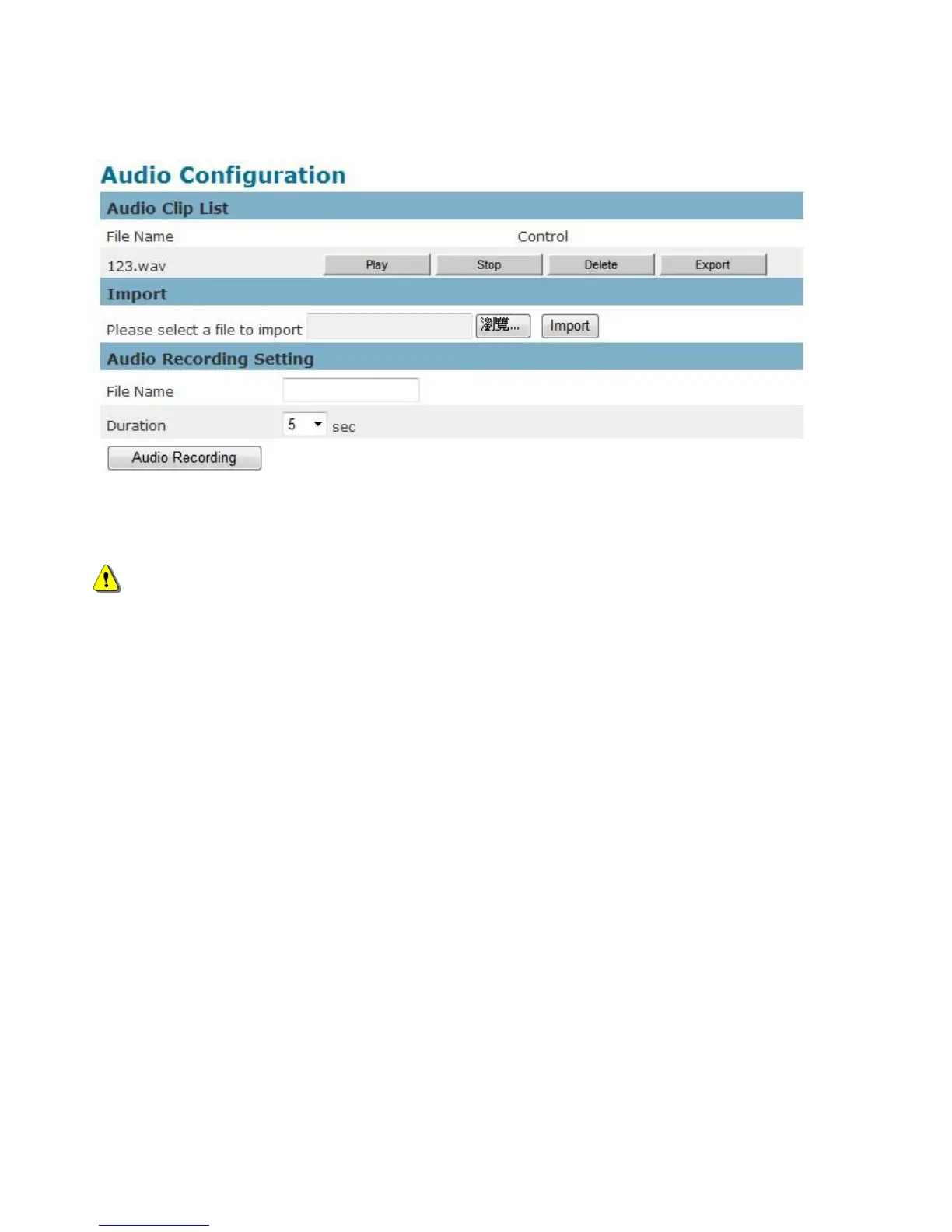 NOTE – The camera can only play audio clips which are saved as .wav files with G.711 u-law