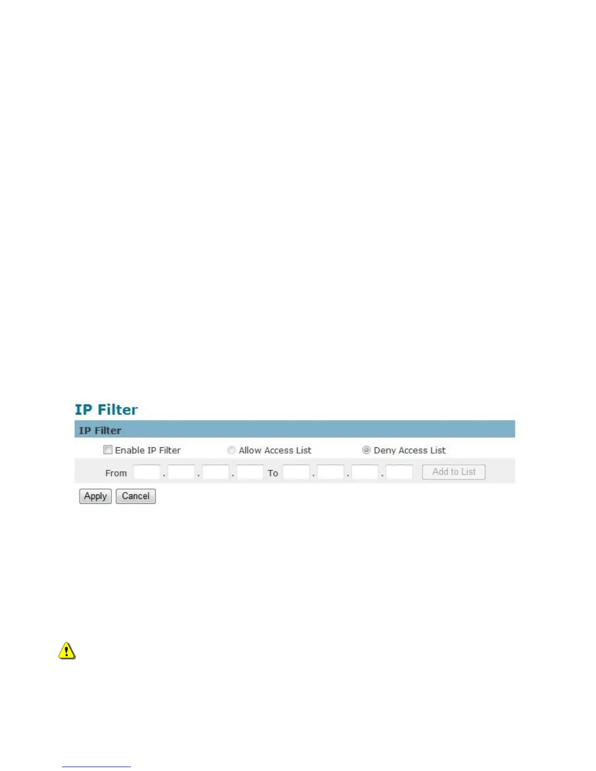 The IP Filter is used to filter the IP addresses which are able to access the network camera.