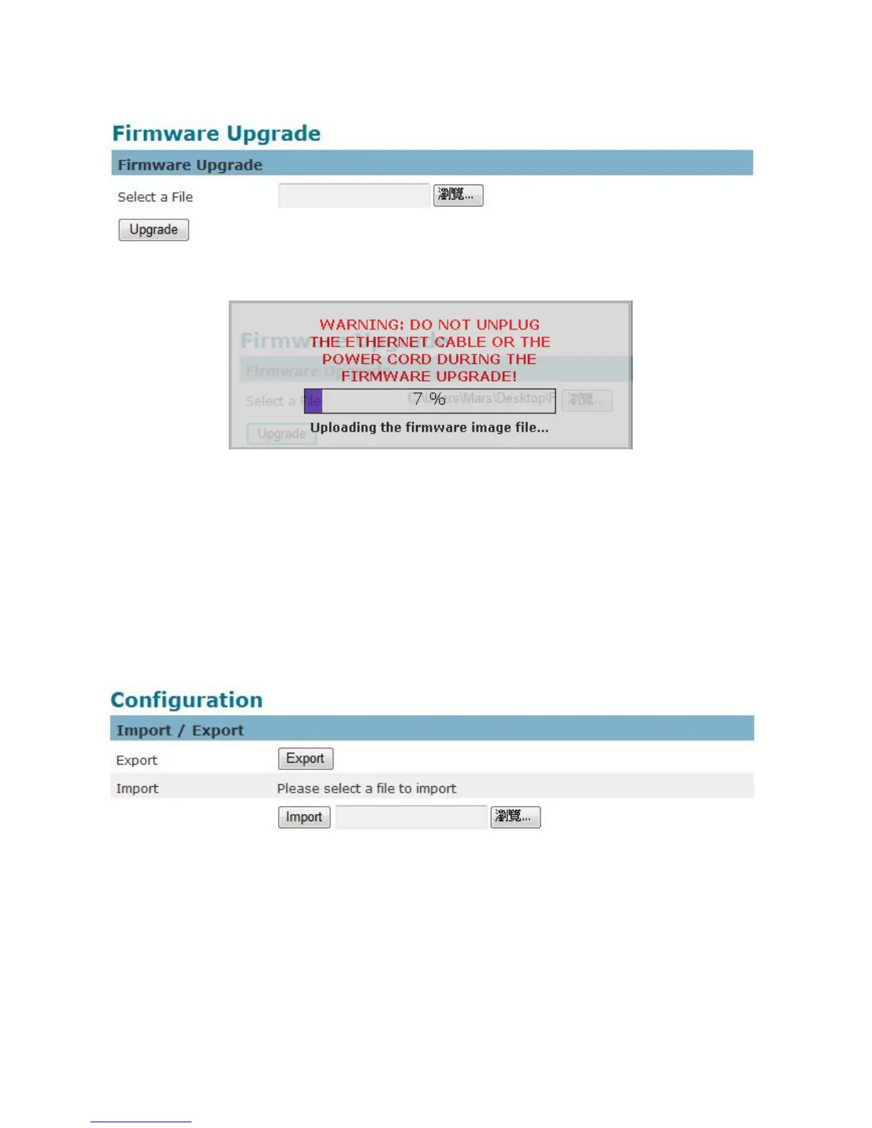 This feature allows the user to export/import the configuration files of the network camera.