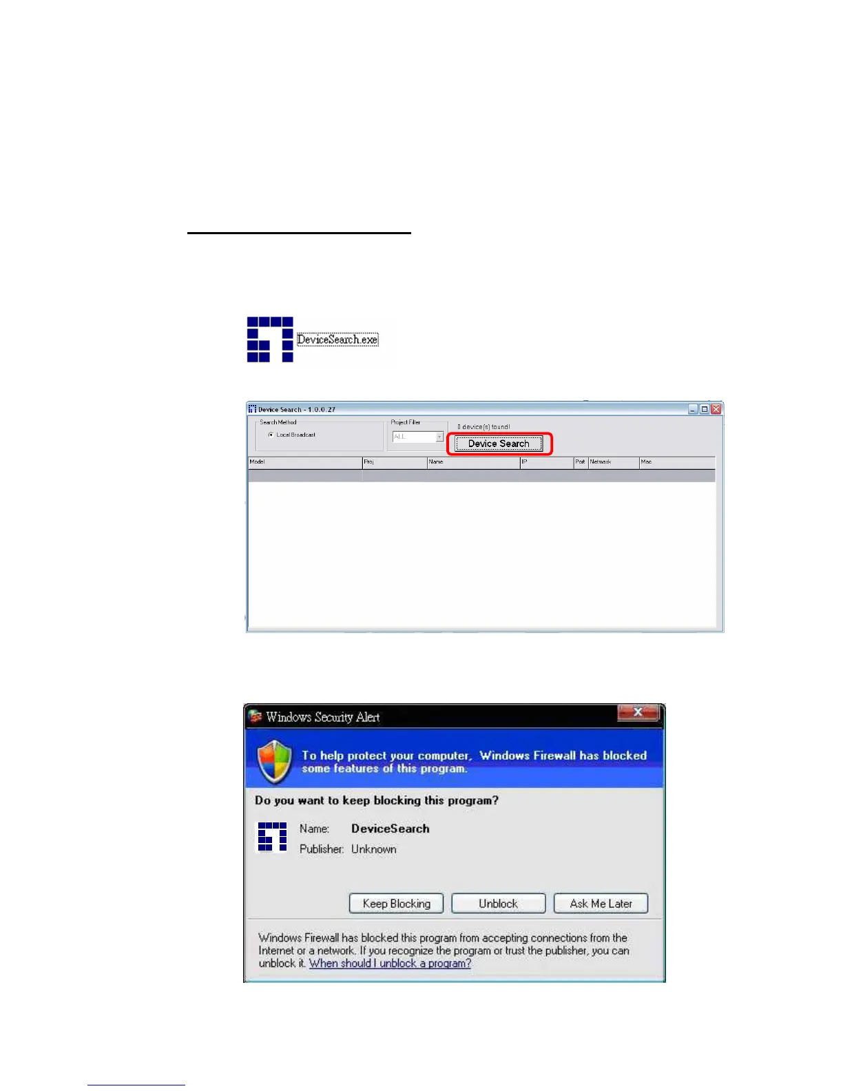 Step 1: Double click on the program Device Search.exe (see the icon below);