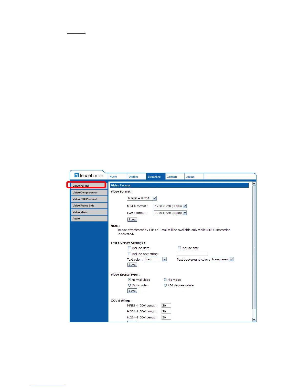 LevelOne FCS-1141 - 4.4 Video and Audio Streaming Settings; 4.4.1 Video Resolution and Rotate Type