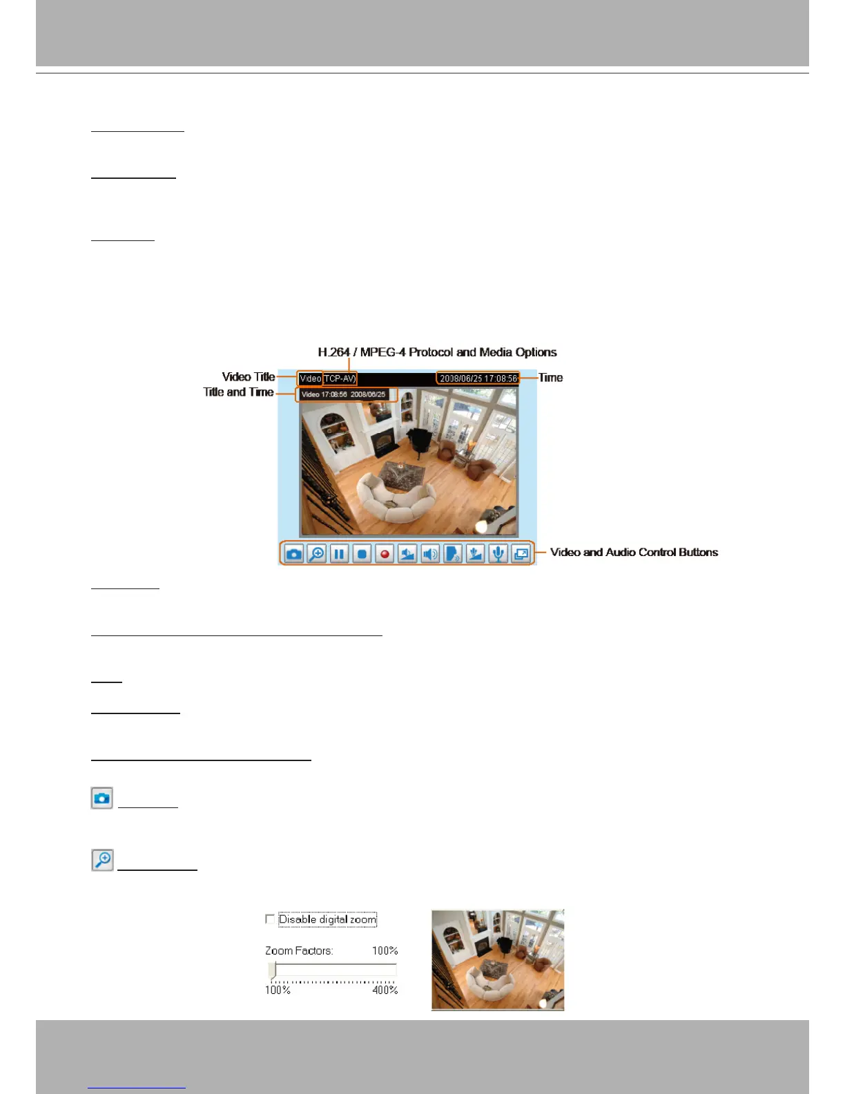 Video and Audio Control Buttons: Depending on the Network Camera model and Network Camera