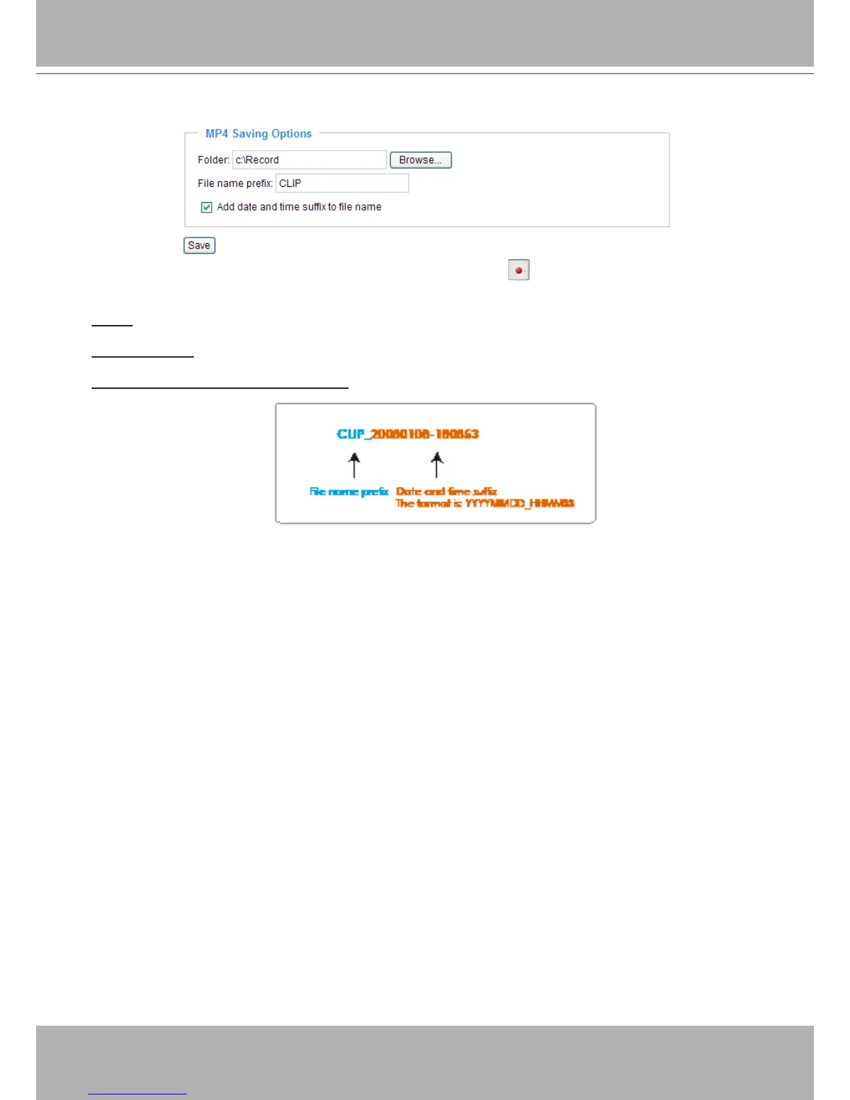 File name prex: Enter the text that will be appended to the front of the video le name.