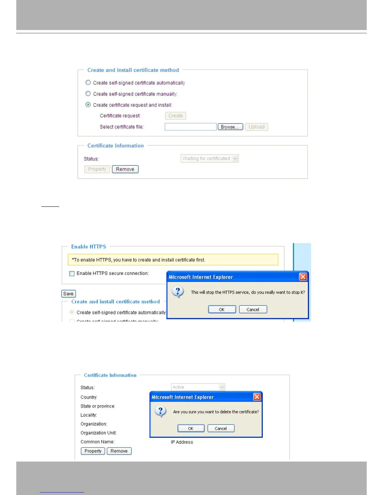► If you want to create and install other certificates, please remove the existing one. To remove the