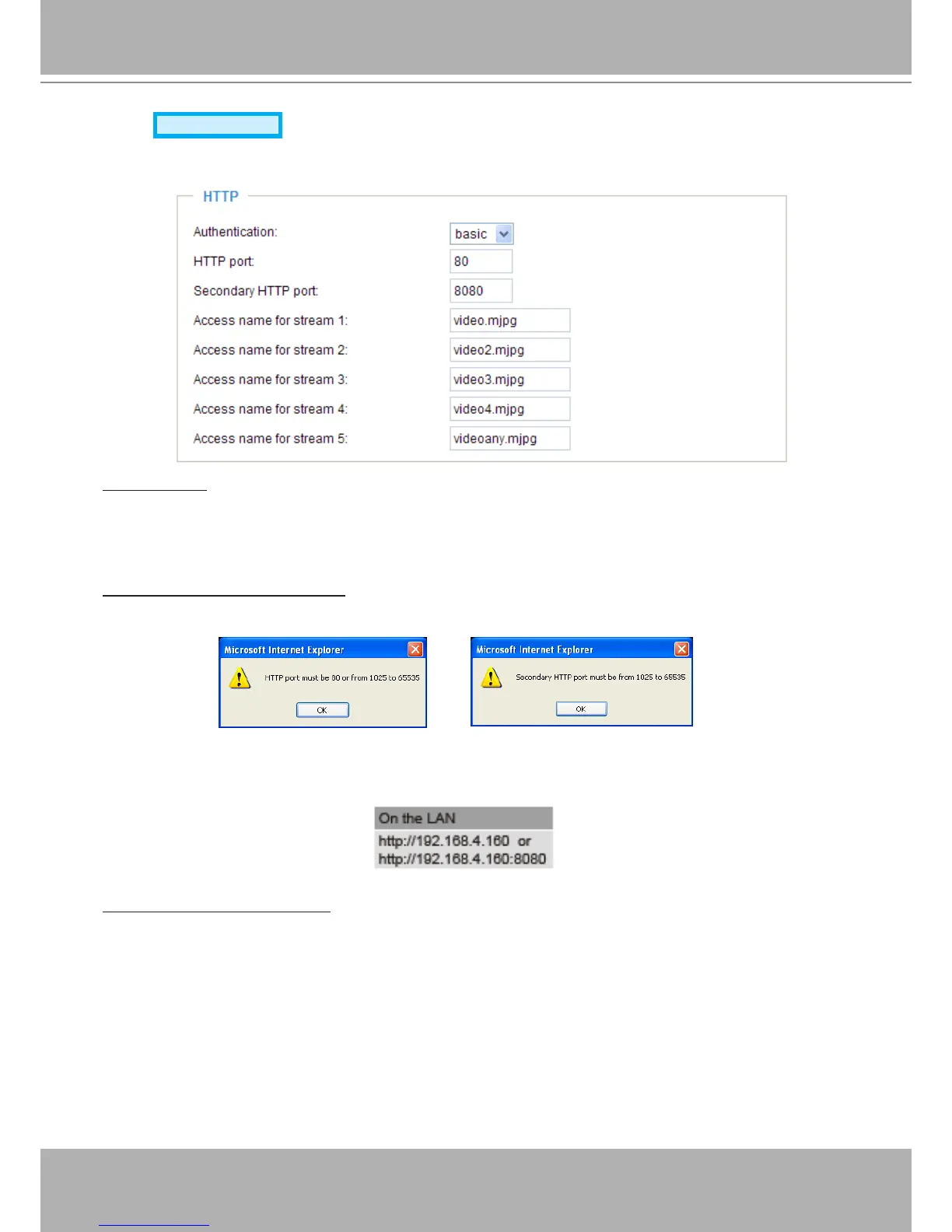 To access the Network Camera on the LAN, both the HTTP port and secondary HTTP port can be used