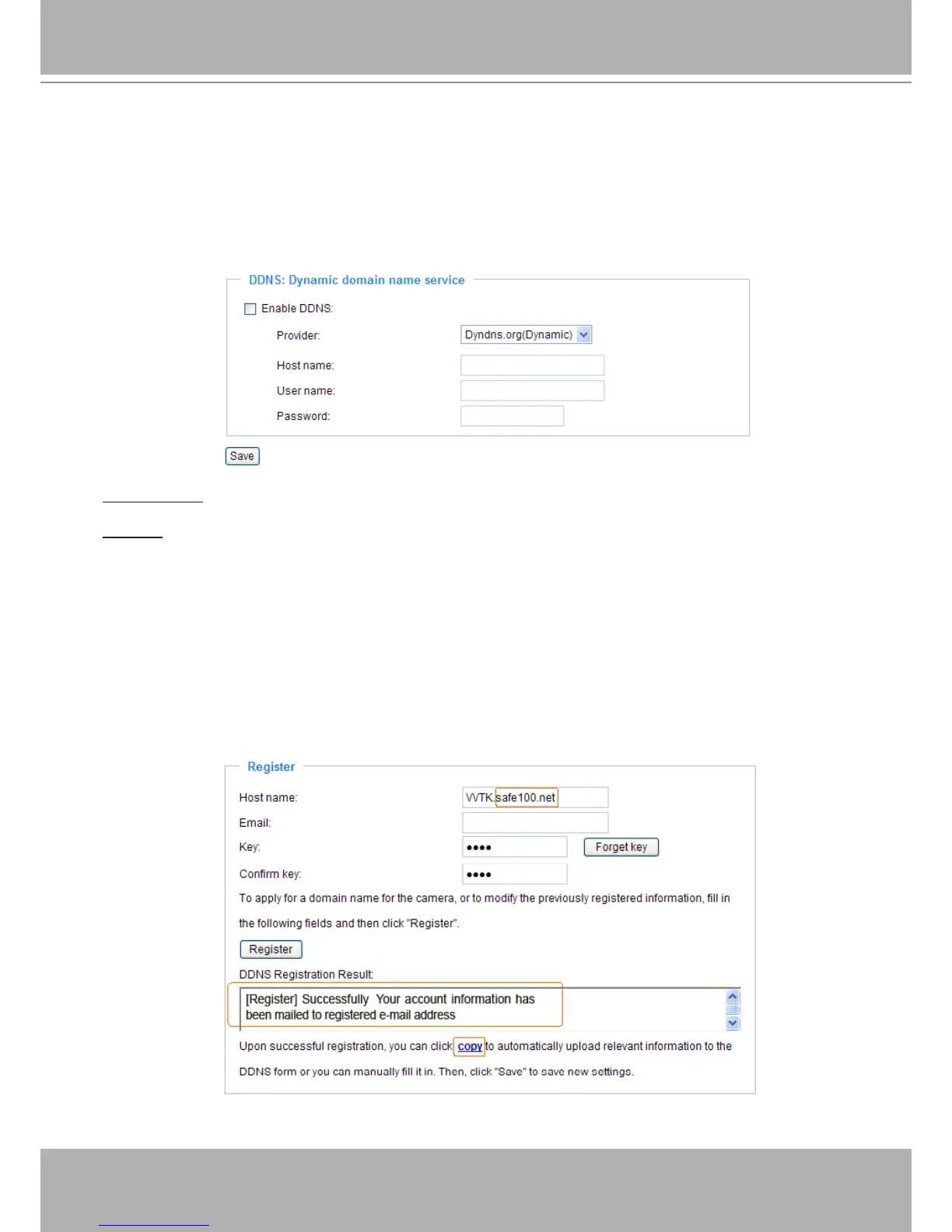 2. In the Register column, ll in the Host name (xxxx.safe100.net), Email, Key, and Conrm Key, and