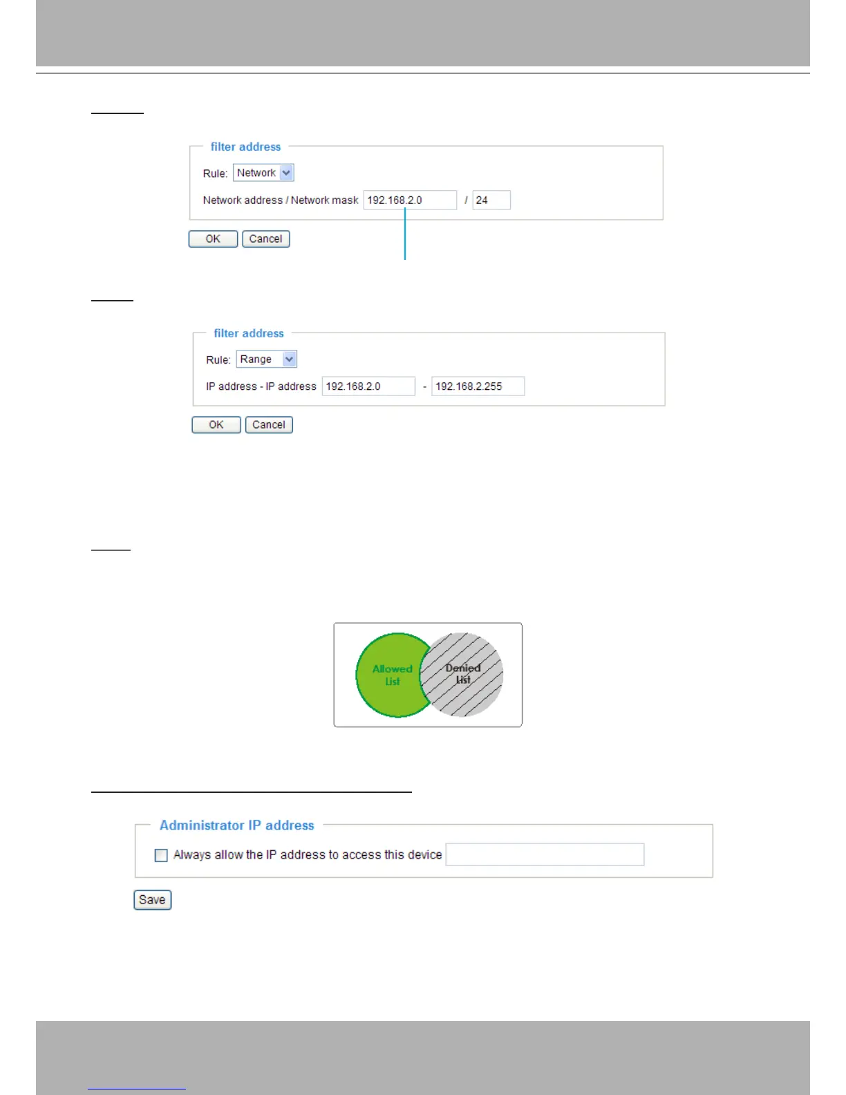 IP address in this eld to make sure the Administrator can always connect to the device.