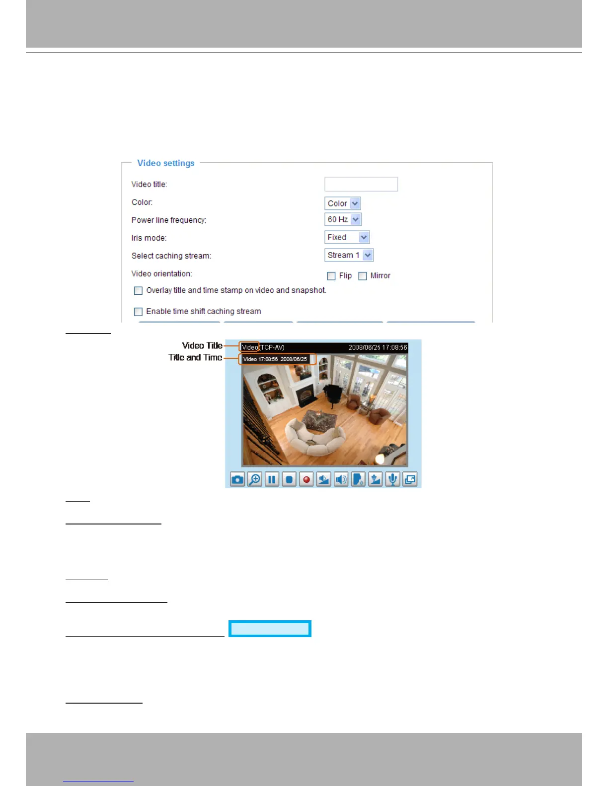 Video orientation: Flip--vertically reect the display of the live video; Mirror--horizontally reect the display