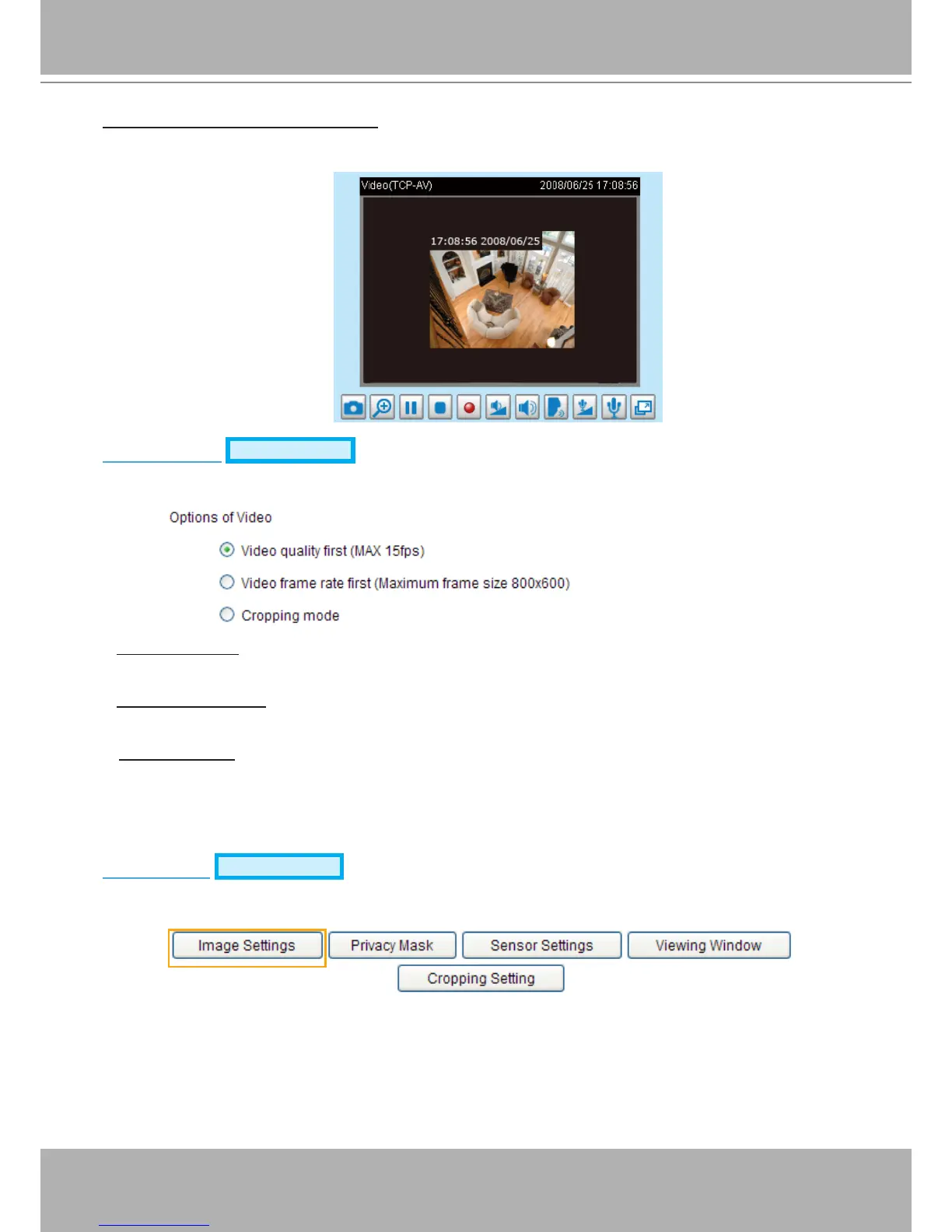 ■ Video quality rst: Select this option will reduce the maximum frame rate to 15fps and clear the settings