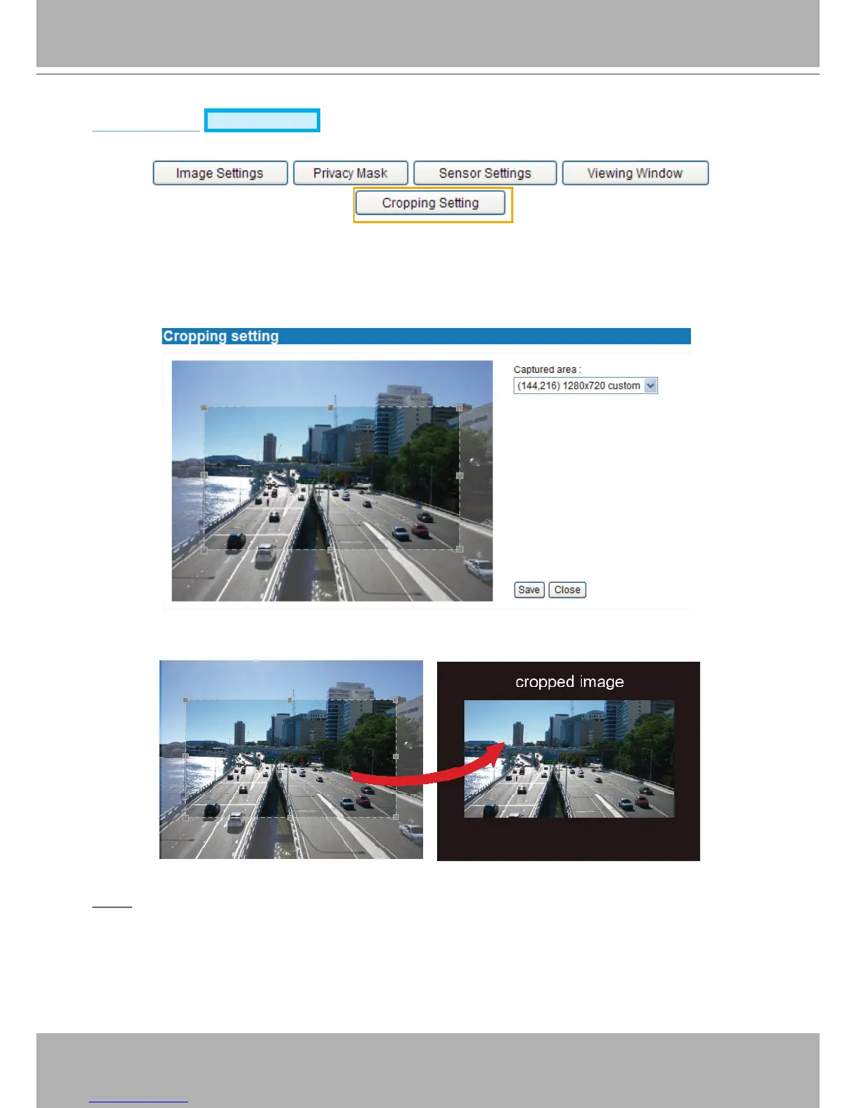 ► Select cropping mode will clear the settings in the Viewing Window and disable Motion Detection,