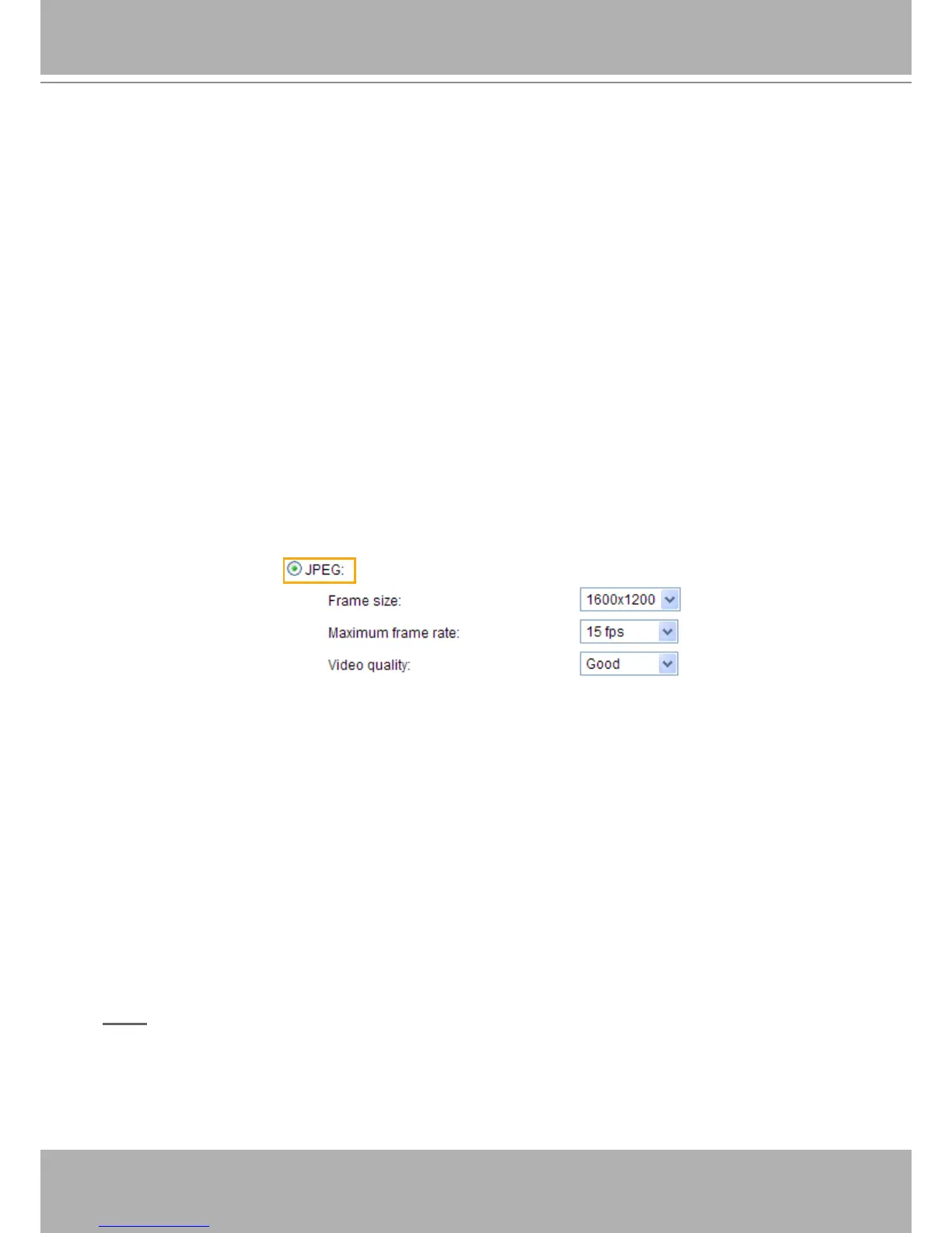If JPEG mode is selected, the Network Camera continuously sends JPEG images to the client, producing