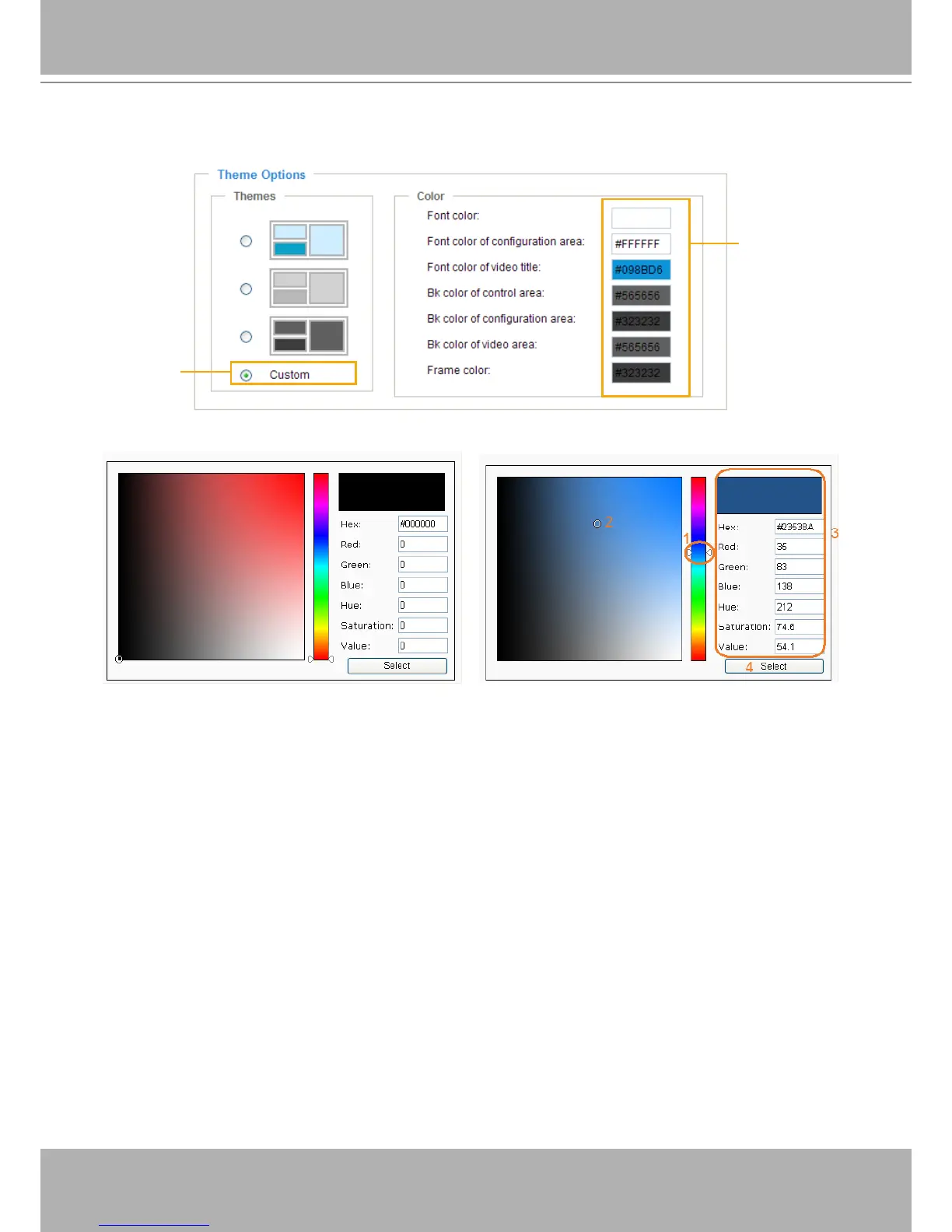 5. The selected color will be displayed in the corresponding elds and in the Preview column.