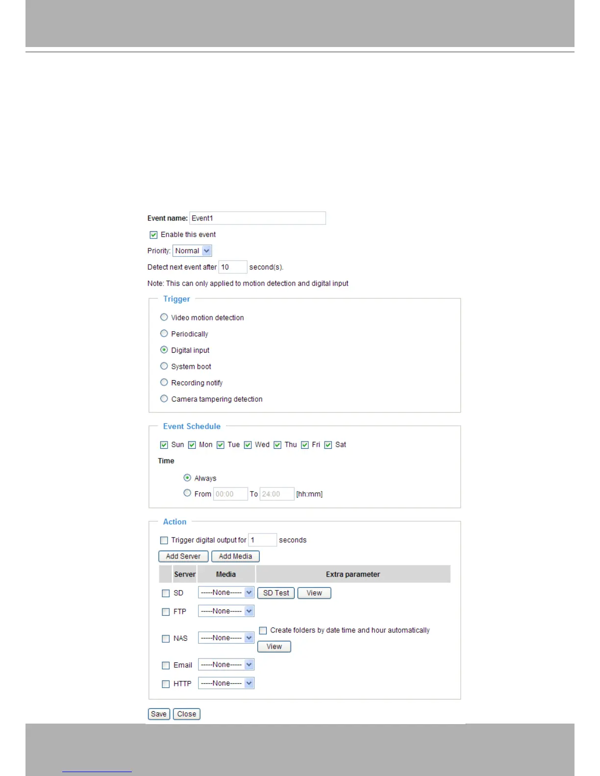 To set an event with recorded video or snapshots, it is necessary to congure the server and