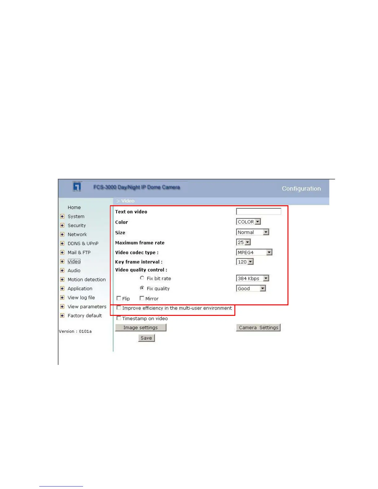 frame interval”, “Fix bit rate”, and “Fix quality” on the Video Configuration page, are