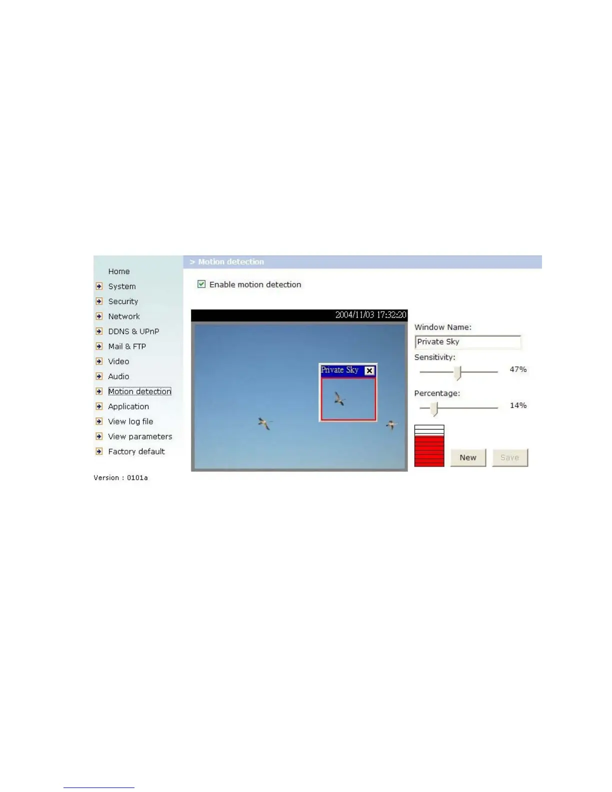 environment. Higher ”Sensitivity” detects the slighter motion. Higher “Percentage”