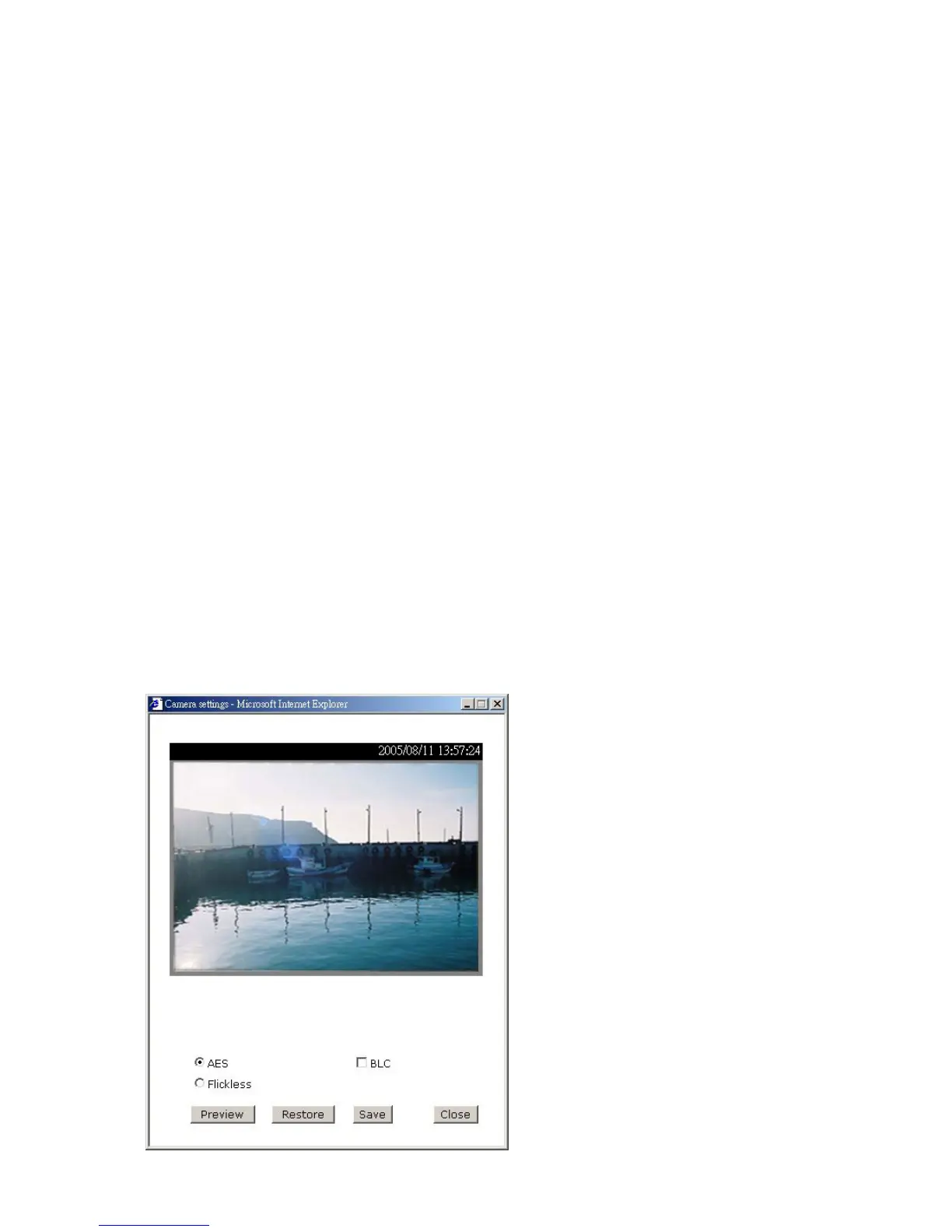the image is O.K., press “Save” to set the image settings. Click on “Restore” to recall