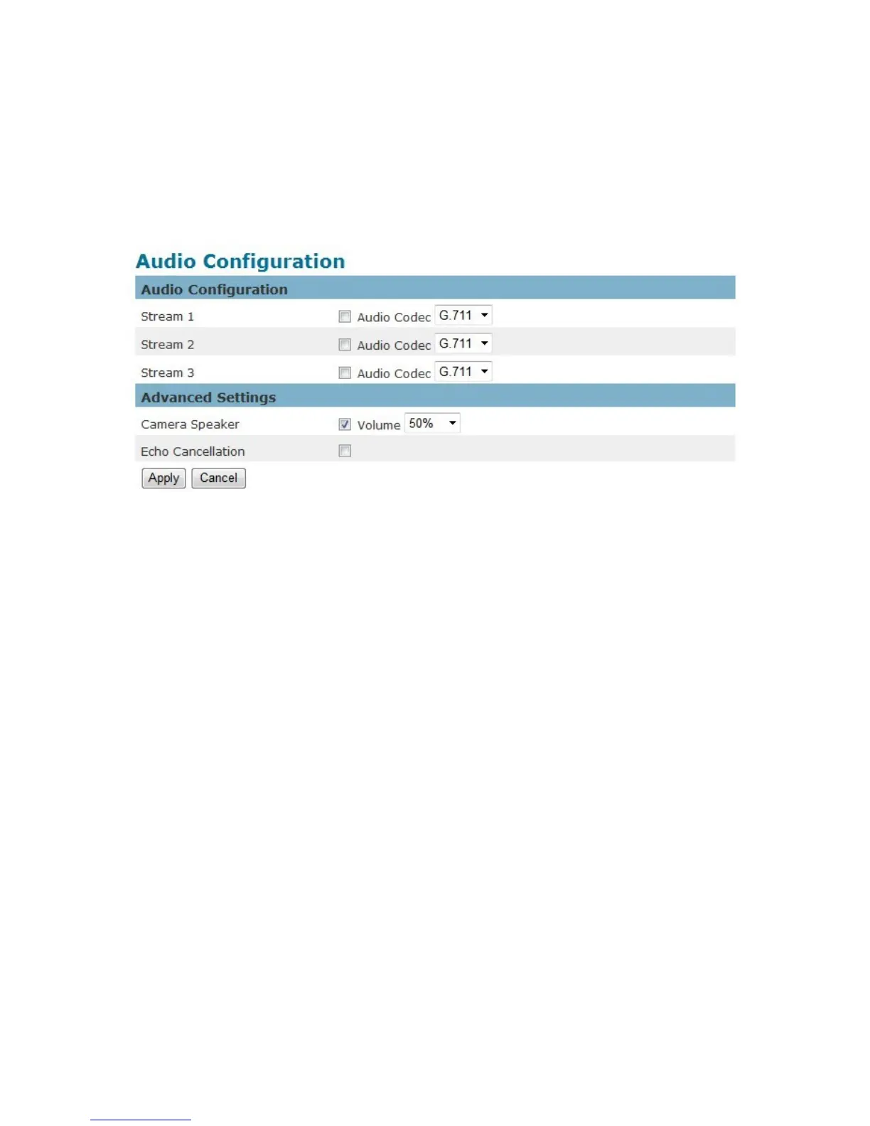 Camera Speaker If the speaker is enabled, select the volume from the drop-down