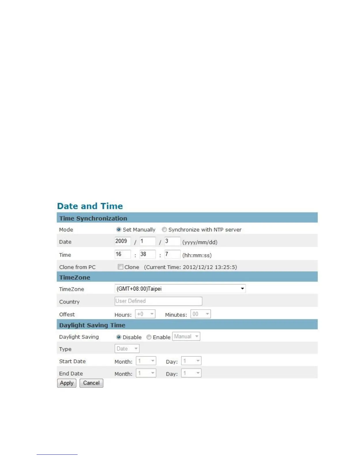system. Select to update the time with a NTP server on an hourly, daily, weekly, or monthly