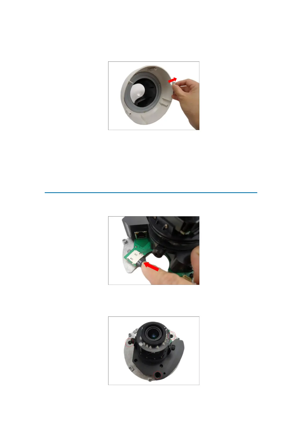 and attach the three (3) supplied screws to secure the camera.