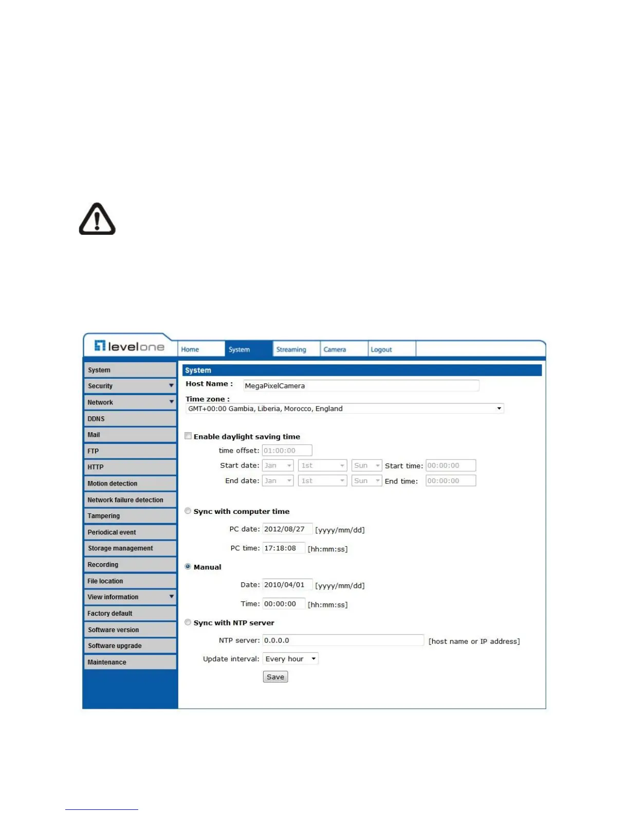 Under the tab <System>, there are submenus including: <System>, <Security>, <Network>,