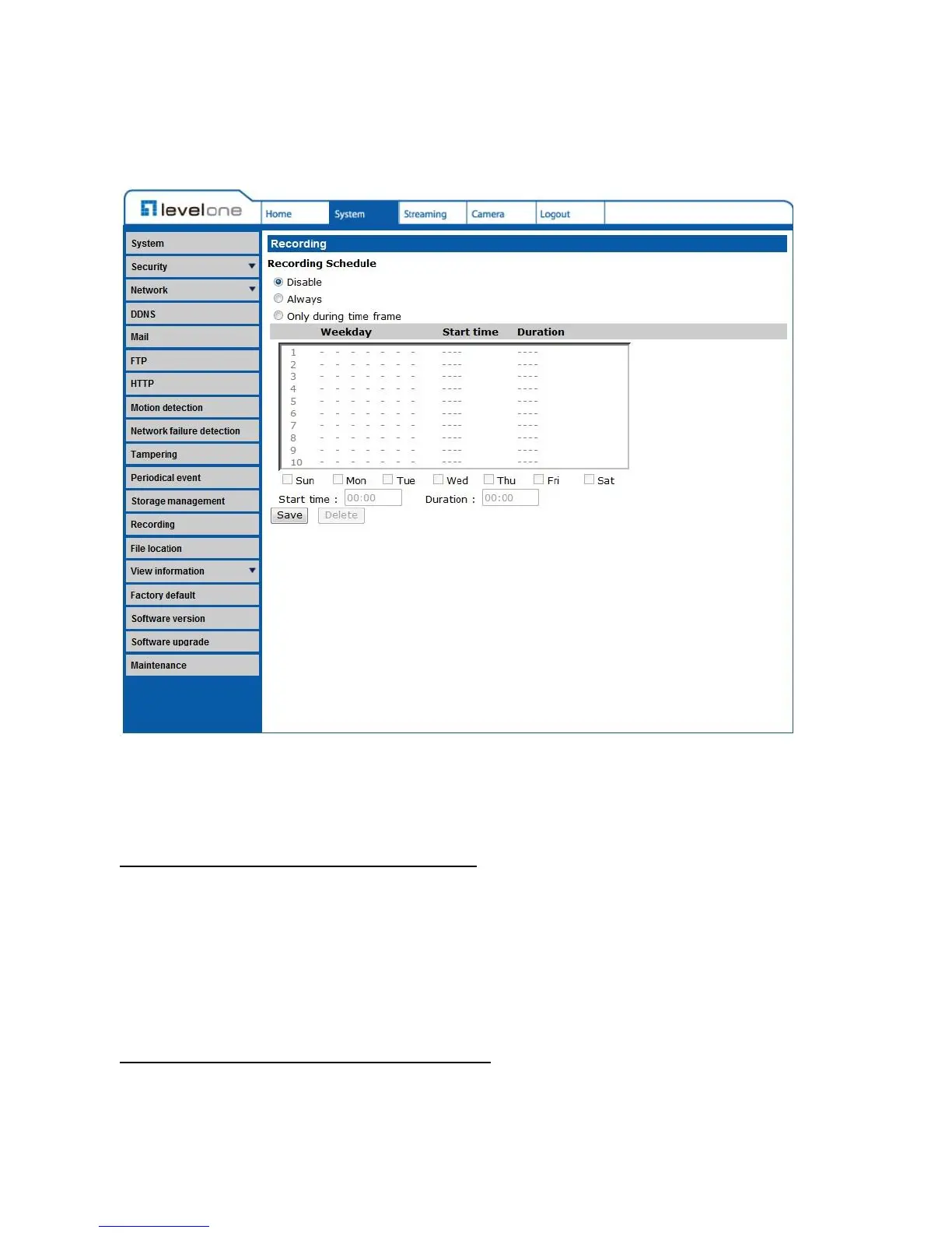 of time frames. User can specify the recording schedule to fit the present surveillance